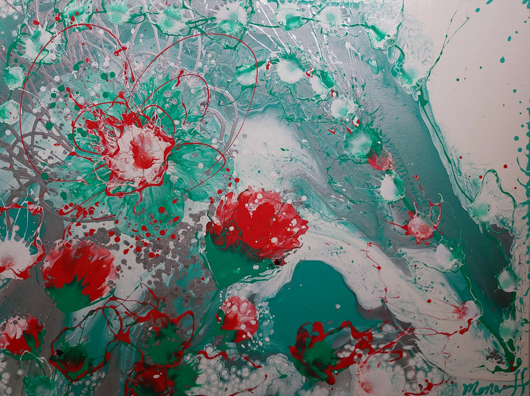 FLAMBOYANT BLOOMS 40" x 30" ORIGINAL MONA HELMY ART PAINTING