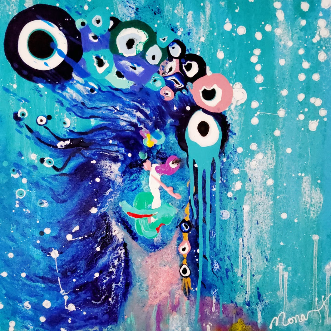 LUCKY JELLY SEA ANGEL 40" x 30" ORIGINAL MONA HELMY ART PAINTING