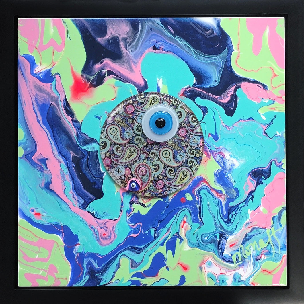 LUCKY WINK 12" x 12" ORIGINAL MONA HELMY ART PAINTING