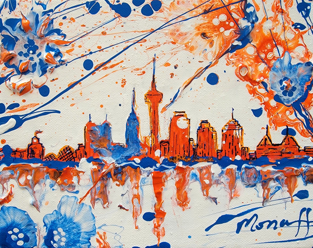 RUN, CITY, RUN 8" x 10" SAN ANTONIO SKYLINE ORIGINAL PAINTING